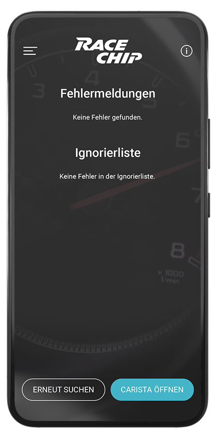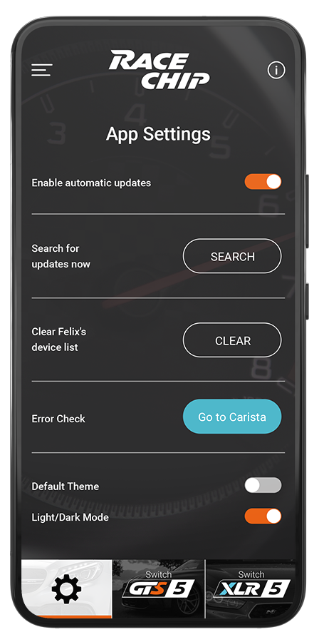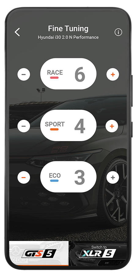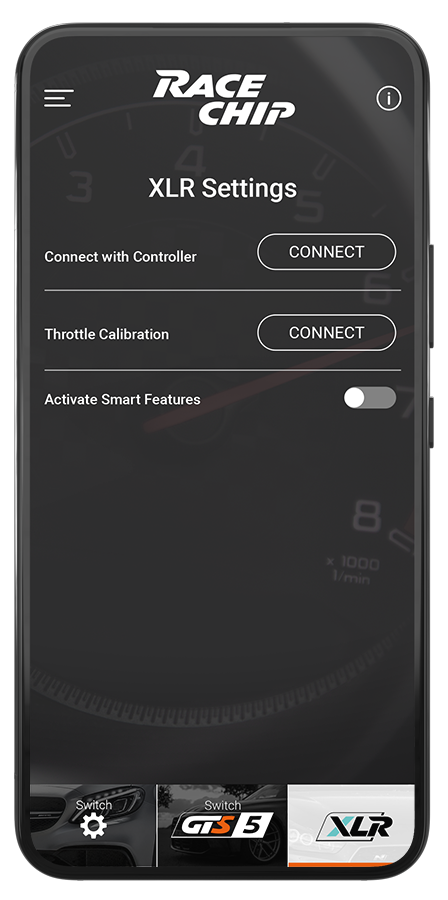 L’appli RaceChip vous permet de personnaliser votre véhicule en choisissant un mode de conduite via smartphone ou de désactiver le boîtier pour retrouver ses performances de série. L’option de gestion par appli est disponible pour un supplément de na EUR. L’appli smartphone RaceChip (disponible en option pour na EUR) vous permet de personnaliser votre véhicule en choisissant un mode de conduite ou de désactiver le boîtier pour retrouver ses performances de série.